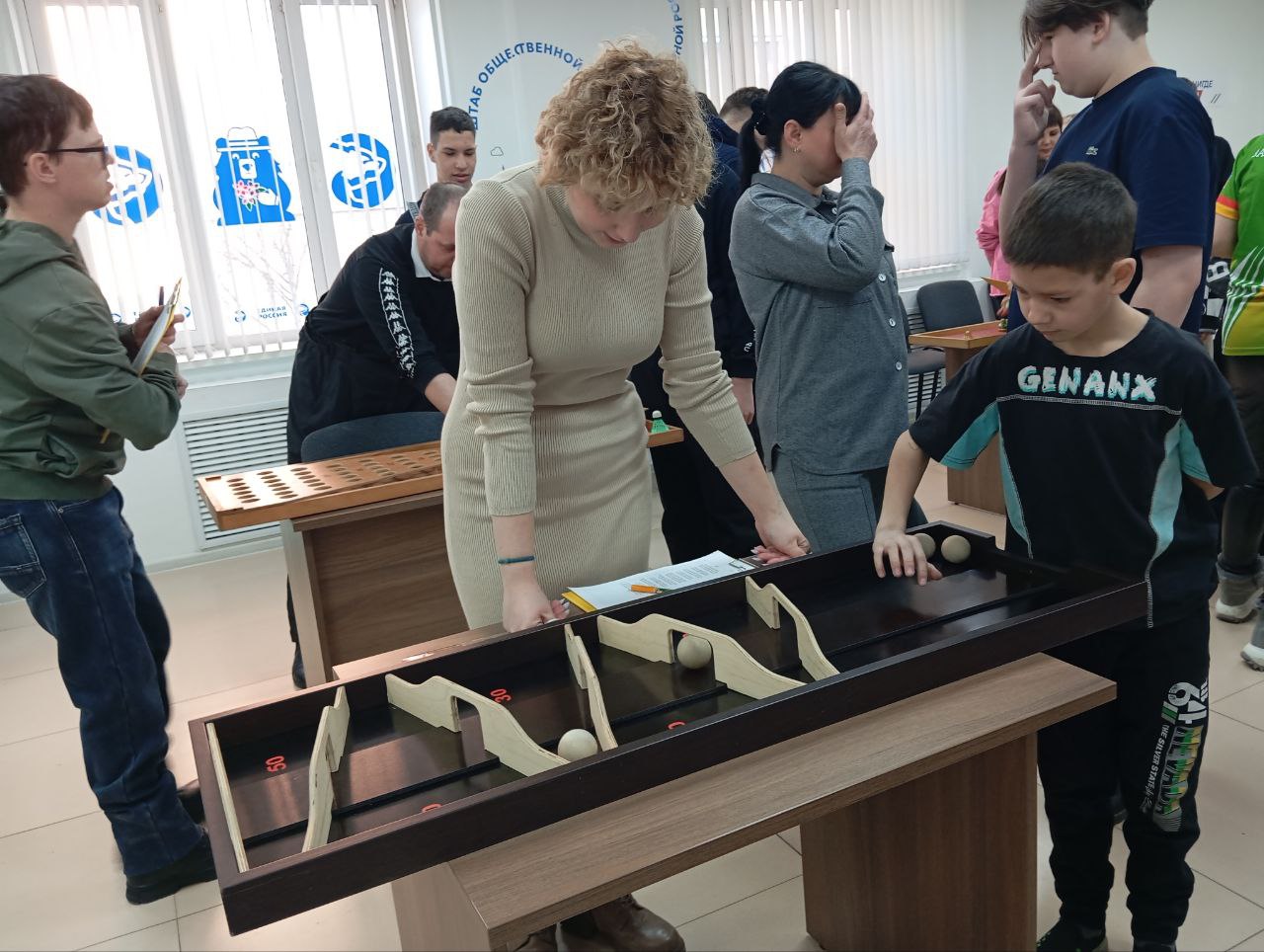 В рамках предстоящего празднования Дня Защитника Отечества 18 февраля в Штабе общественной поддержки «Единой России» прошел турнир по адаптивным настольным спортивным играм «Отцы и дети – вместе к Победе!» для благополучателей кабинета активного диспансерного наблюдения отделения Краевой клинической психиатрической больницы имени В.Х. Кандинского и их родителей.
