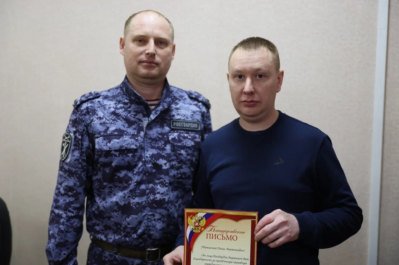 Забайкалец заполнил все необходимые документы, а его оружие прошло проверку на исправность. После этого Денису Дементьеву вручили благодарность от Управления Росгвардии по Забайкальскому краю. Такие благодарности получают все, кто передает оружие для нужд СВО.