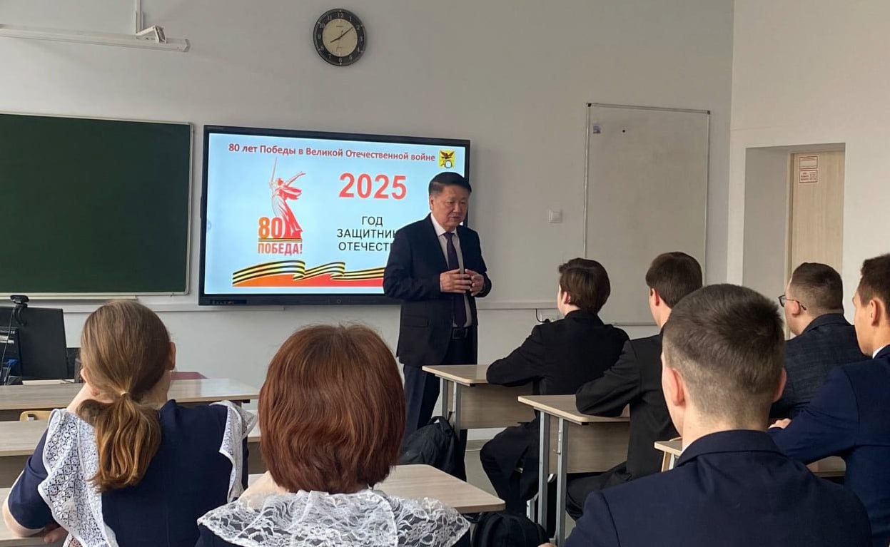 Зампред правительства Забайкальского края Буянто Батомункуев провел «Урок мужества» в школе №16. В преддверии празднования Дня Победы встреча была посвящена патриотизму, мужеству и героизму советского народа в годы Великой Отечественной войны. Школьники активно участвовали в диалоге, задавая вопросы о военном времени.