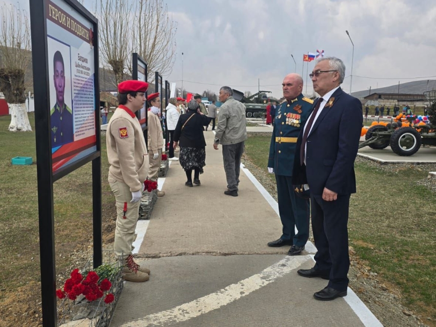 В селе Цугол сенатор принял участие в торжественном митинге, посвященном открытию Аллеи памяти и в освящении православного креста Георгия Победоносного в честь воинов села, не вернувшихся с полей сражений Великой Отечественной войны 194-1945 гг. и памяти земляков, погибших при исполнении воинского долга в ходе специальной военной операции.