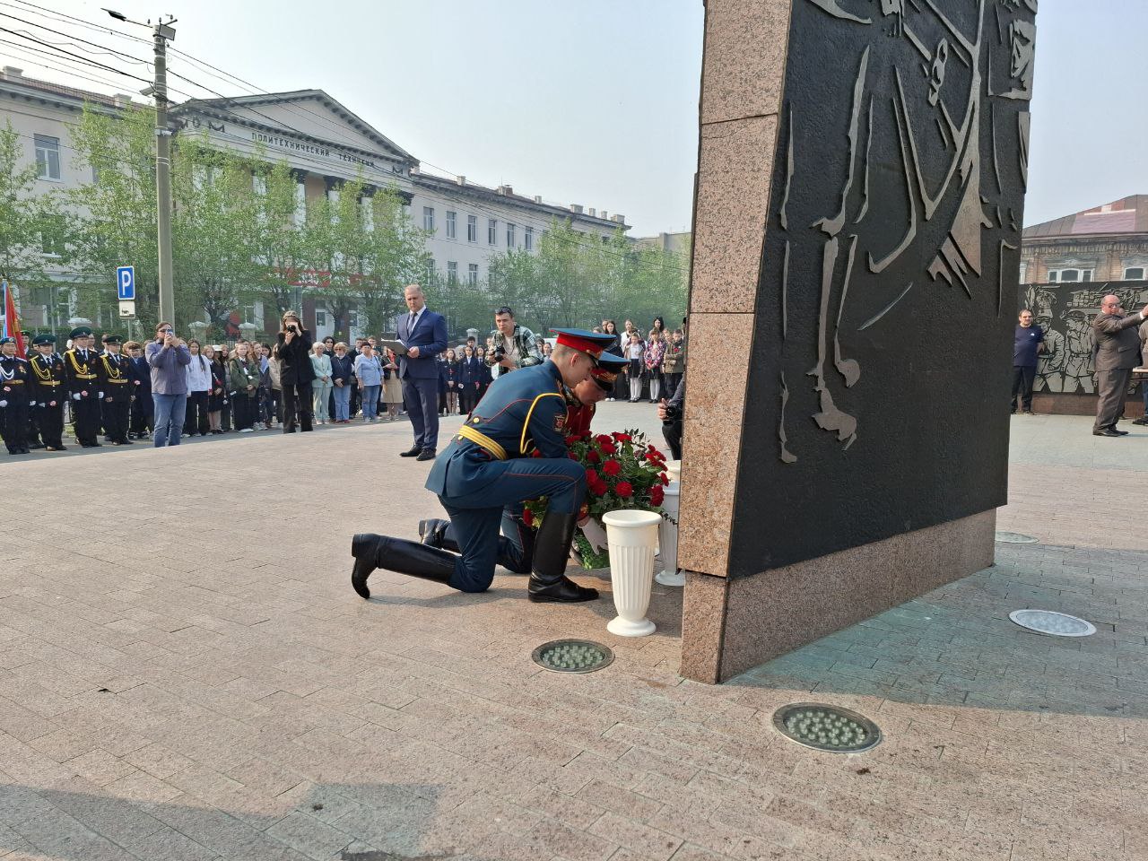 Далее в честь Дня города в Чите у стелы «Город трудовой доблести» прошëл митинг. К стеле возложили цветы как дань уважения трудовым подвигам жителей столицы Забайкалья. Поздравить с праздником читинцев приехали делегации из Монголии и Китая. Во время митинга память защитников Отечества и тех, кто трудился на благо Родины, почтили минутой молчания и троекратным залпом.