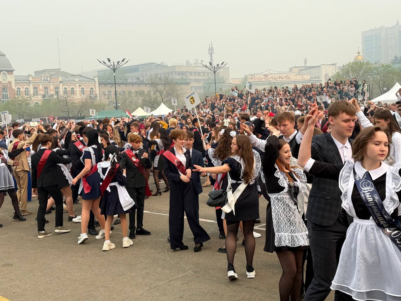 День города совпал с окончанием учебного года в школах – в этом году последний звонок у выпускников стал частью празднования. Более полутора тысяч одиннадцатиклассников собрались на площади Ленина, чтобы отметить завершение школьной эпохи и станцевать вальс в самом сердце столицы Забайкалья.