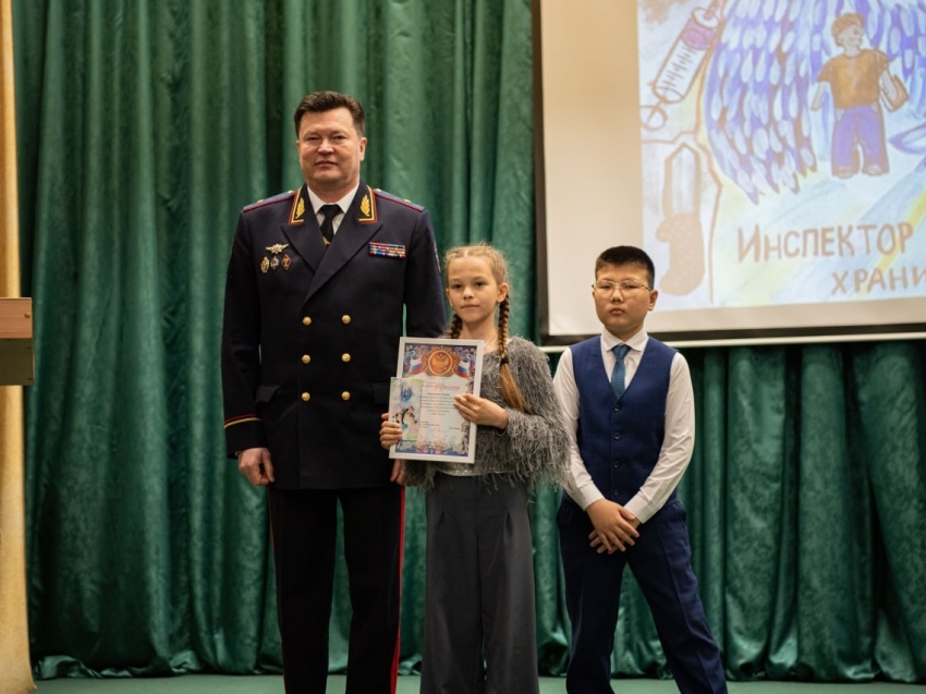 Также, на сцену актового зала поднялись и юные забайкальцы, которые накануне дня образования подразделений по делам несовершеннолетних приняли участие в конкурсе рисунков и поделок, посвященных 90-летнему юбилею службы. Из рук главного полицейского Забайкалья ребята получили дипломы и подарки.