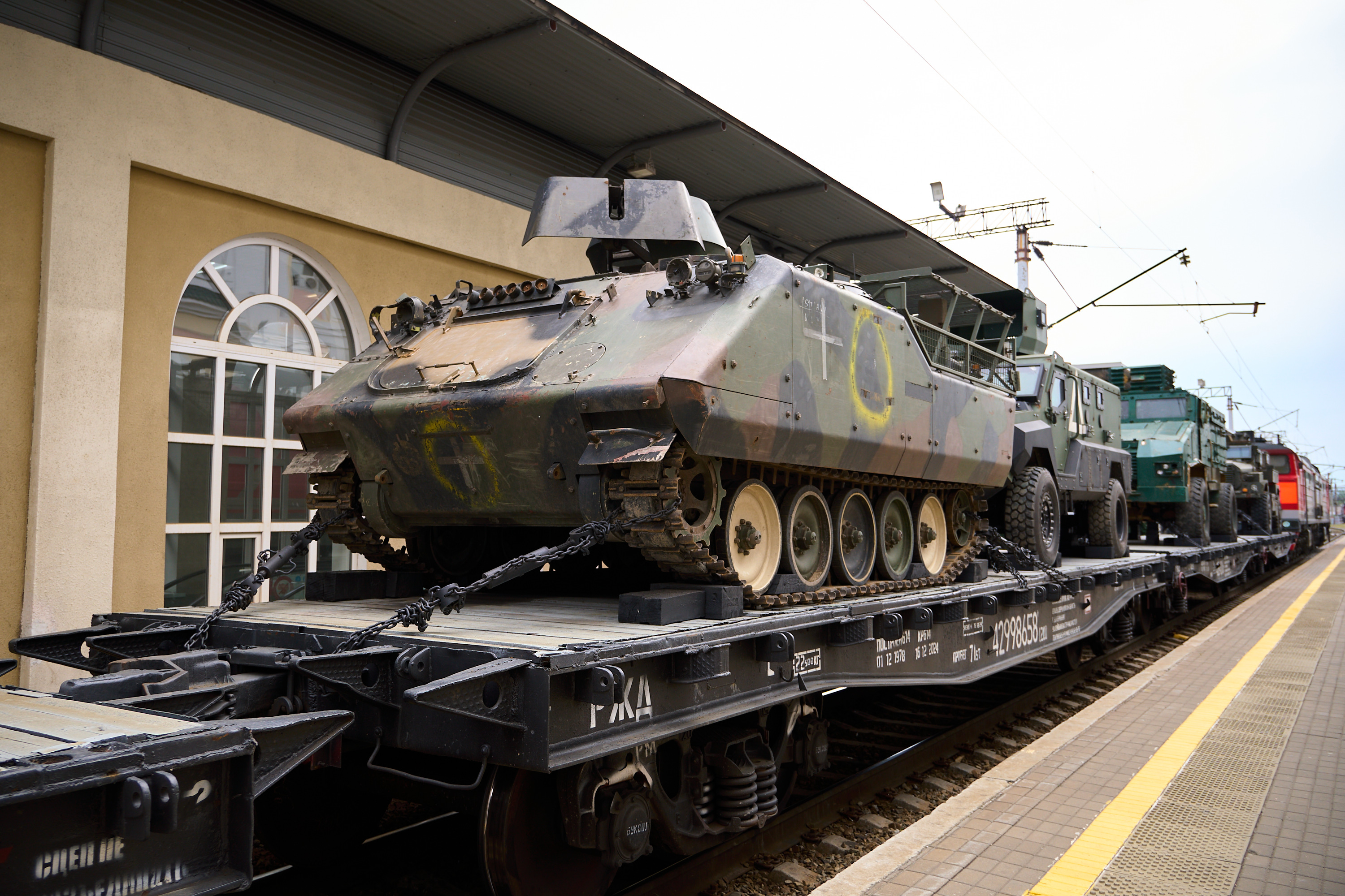 Зрителям представили образцы трофейной техники, захваченные в зоне проведения специальной военной операции военнослужащими Вооруженных Сил РФ. Это бронетранспортеры M113 и бронеавтомобили Cougar, MaxxPro, Roshel Senator.