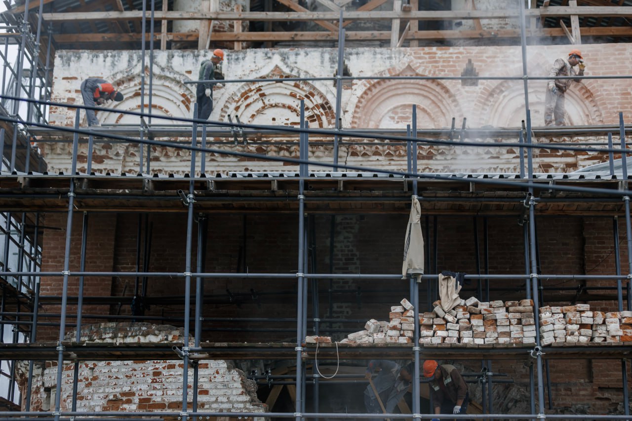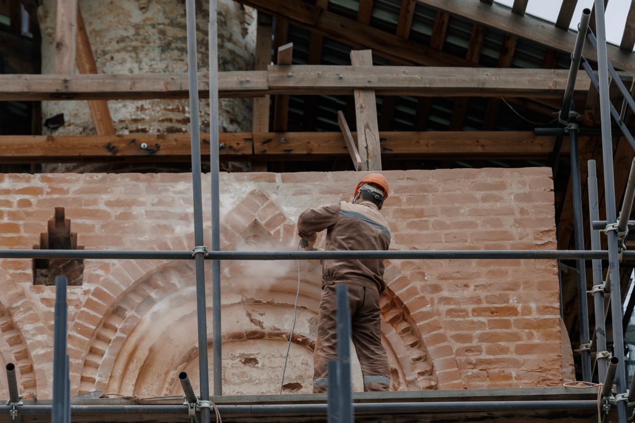 «Если бы мы в 2023 году предаварийную работу не сделали, больше половины здания просто разрушилось. Проблема в том, что дожди заливали фундамент и он начал расходится. Мы почти год его укрепляли, нашли все трещины. На таких объектах можно работать, когда среднесуточная температура +10, очень короткие сроки. Сейчас восстановлена колокольня, заказали купола. Максимальная задача сохранить первоначальный вариант, каждый кирпич точим, делаем инъекции, закачиваем жидкость для укрепления стен, используя специальную смесь, ручная работа практически. Главное, не быстрее сделать, а качественнее, чтобы церковь на века стояла», - подчеркнул Аладдин Мамедов.
