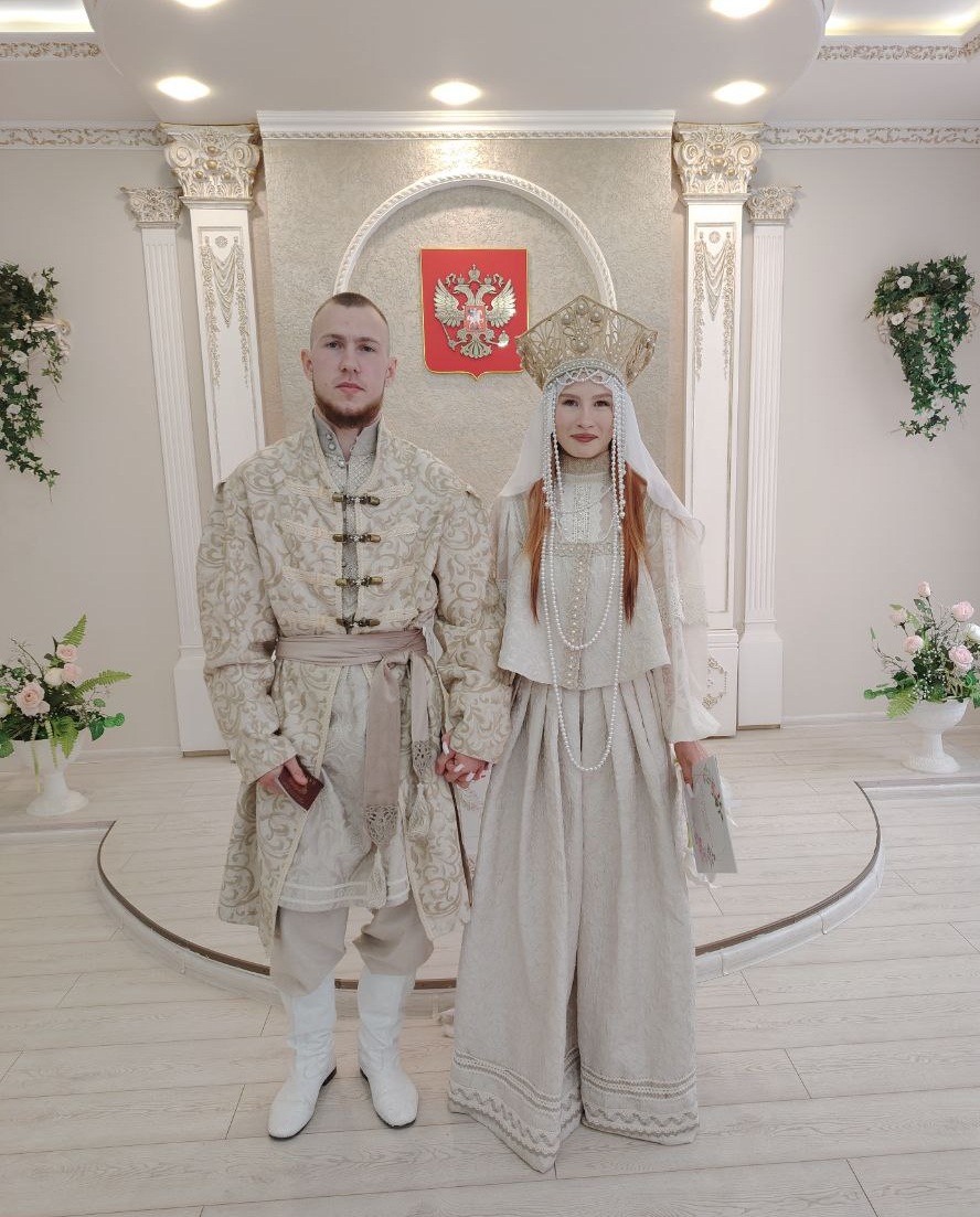 Молодожены Анатолий и Галина, проживающие в Черновском районе, пришли на регистрацию брака в необычных нарядах. Их костюмы были сшиты в старорусском стиле.