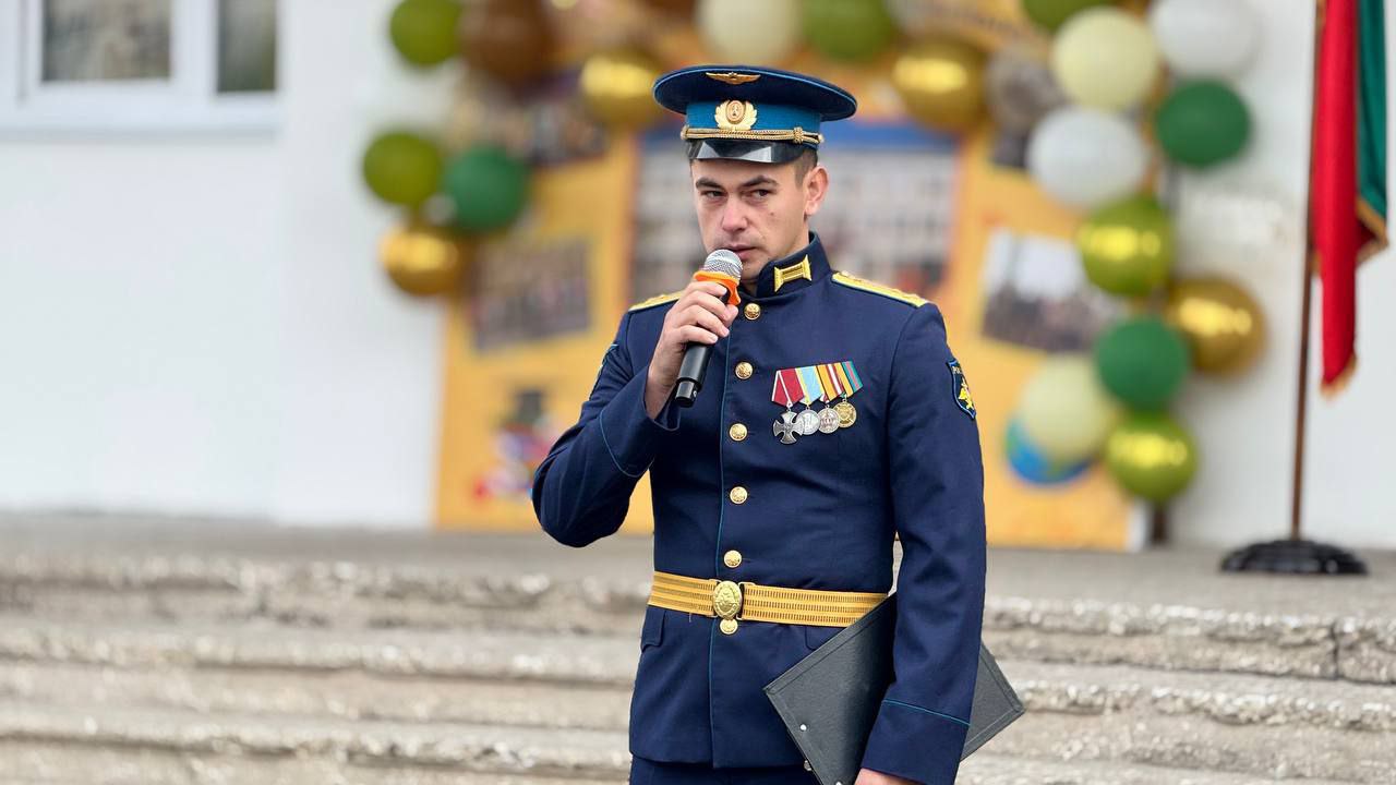 В первый класс своего сына Михаила сегодня провожает ветеран СВО Максим Ежов. Он - почетный гость мероприятия. Командир вертолёта вертолётного звена с первого дня СВО выполнил 125 боевых вылетов. Участвовал в высадке десанта в Гостомеле, выполнял боевые задачи на территории Луганской Народной республики. Награжден орденом Мужества, имеет другие награды. Он поздравил учеников с Днём знаний.