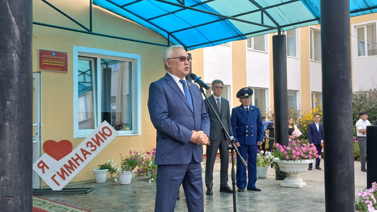 И.о. зампредседателя правительства Забайкальского края, руководитель администрации Агинского Бурятского округа Базар Дугаржапов поздравил ребят и пожелал им отличных отметок и блестящих успехов на образовательном пути. Он подчеркнул важную роль педагогов в воспитании будущих граждан, выразил благодарность учителям за их работу и влияние на формирование характера и патриотизма юных россиян.