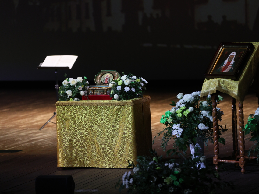 В столицу Забайкалья прибыли мощи святителя Тихона. После молебна, прошедшего в Казанском кафедральном соборе, и крестного хода по улицам Читы, мощи выдающегося пастыря принесли в краевой драматический театр. Здесь проходит вечер-встреча «Слово о патриархе Тихоне».
