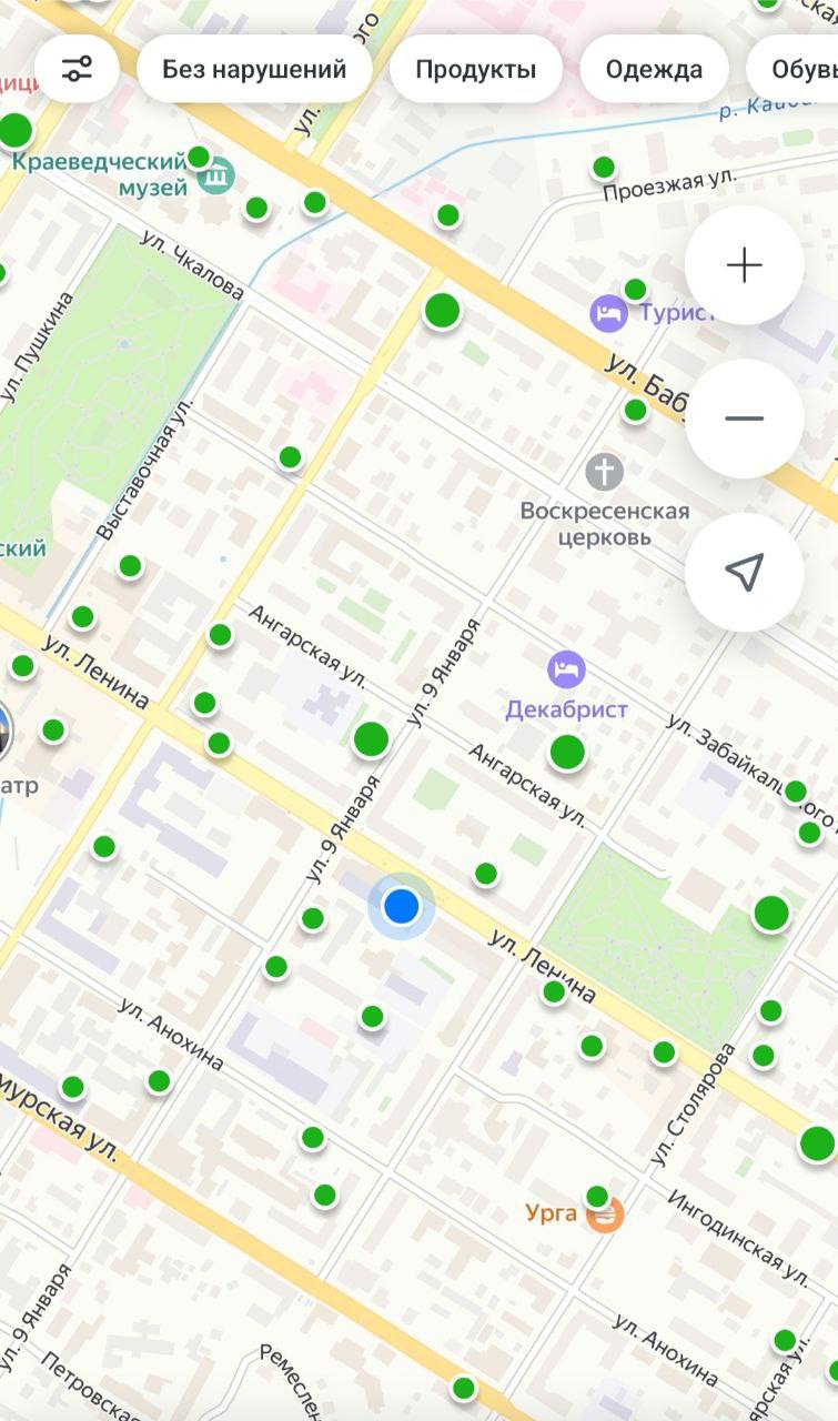 В приложении «Честный ЗНАК» появилась карта с рейтингом магазинов по всей России. Там, где продукты всегда свежие, стоит специальный значок зеленого цвета. Читинские магазины также можно проверить.
