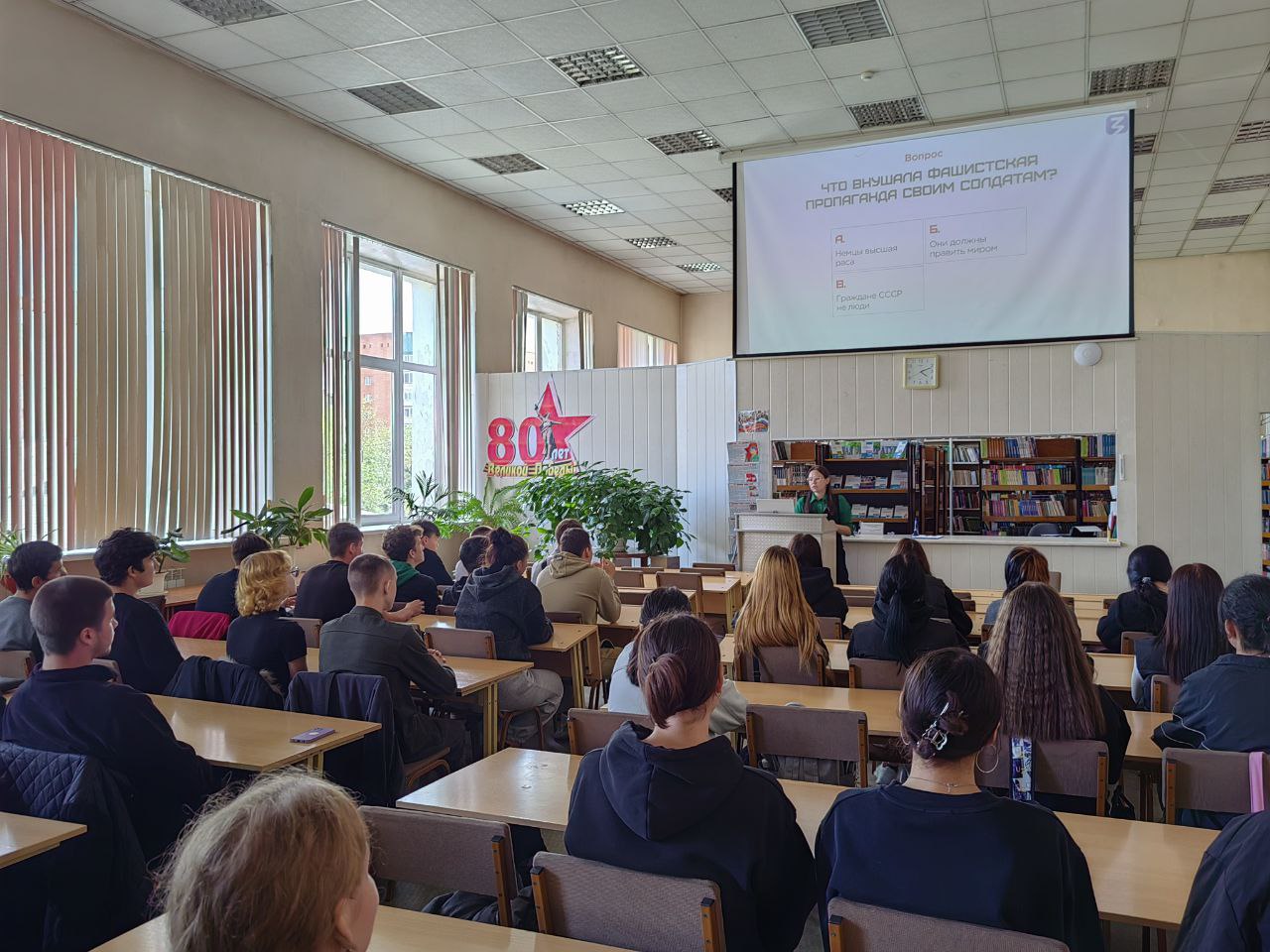 Рассказ юного лектора Российского общества «Знание», студентки 2 курса ЗабГУ Виктории Володько раскрыл преступления нацистского режима против человечности, идеологию фашизма и политику геноцида, направленную против народов Советского Союза. Особое внимание лектор уделила важности сохранения исторической правды и недопустимости пересмотра итогов Второй мировой войны.