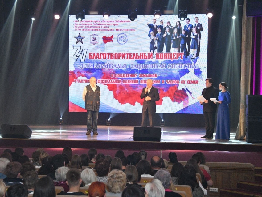 Во время концерта с приветствием к зрителям обратились координатор Инициативной группы «Ветераны Забайкалья – мы вместе с воинами СВО», Первый Губернатор Забайкальского края, редактор исторического журнала «Хронограф» и «Энциклопедия Забайкалья» Равиль Гениатулин и кандидат исторических наук, Заслуженный работник культуры Читинской области, автор книг и статей по истории Забайкалья Александр Баринов. После этого решением Инициативной группы «Ветераны Забайкалья – мы вместе с воинами СВО» за активное участие в оказании помощи воинам-забайкальцам участникам СВО и членам их семей несколько активных читинцев были награждены Знаком «Волонтёр России».