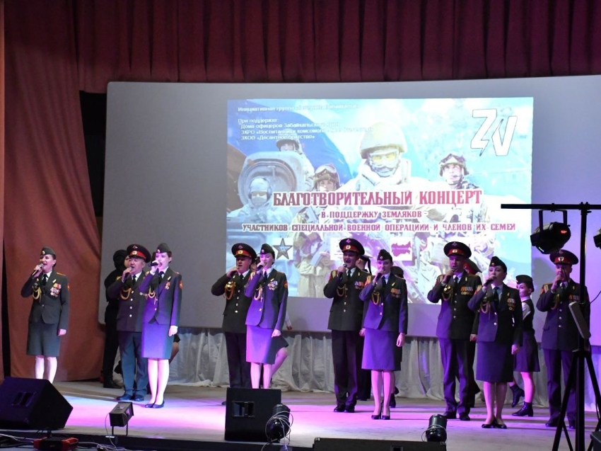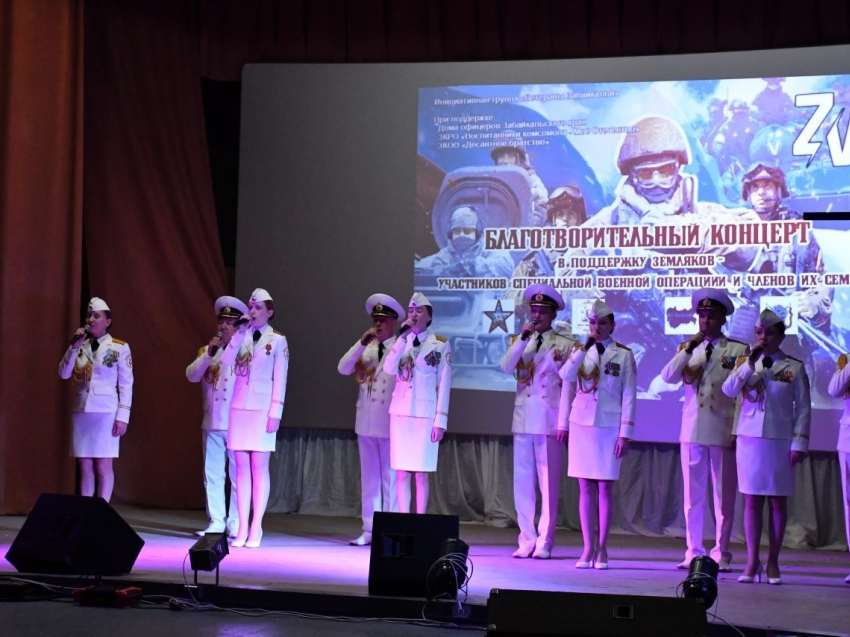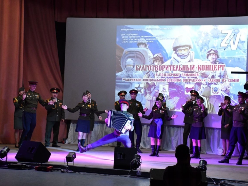 Благотворительный концерт коллектива Дома офицеров в условиях проведения специальной военной операции уже 50-й по счёту и проводился при поддержке Инициативной группы «Ветераны Забайкалья – мы вместе с воинами СВО» и Забайкальской общественной организации «Воспитанники комсомола – Моё Отечество».