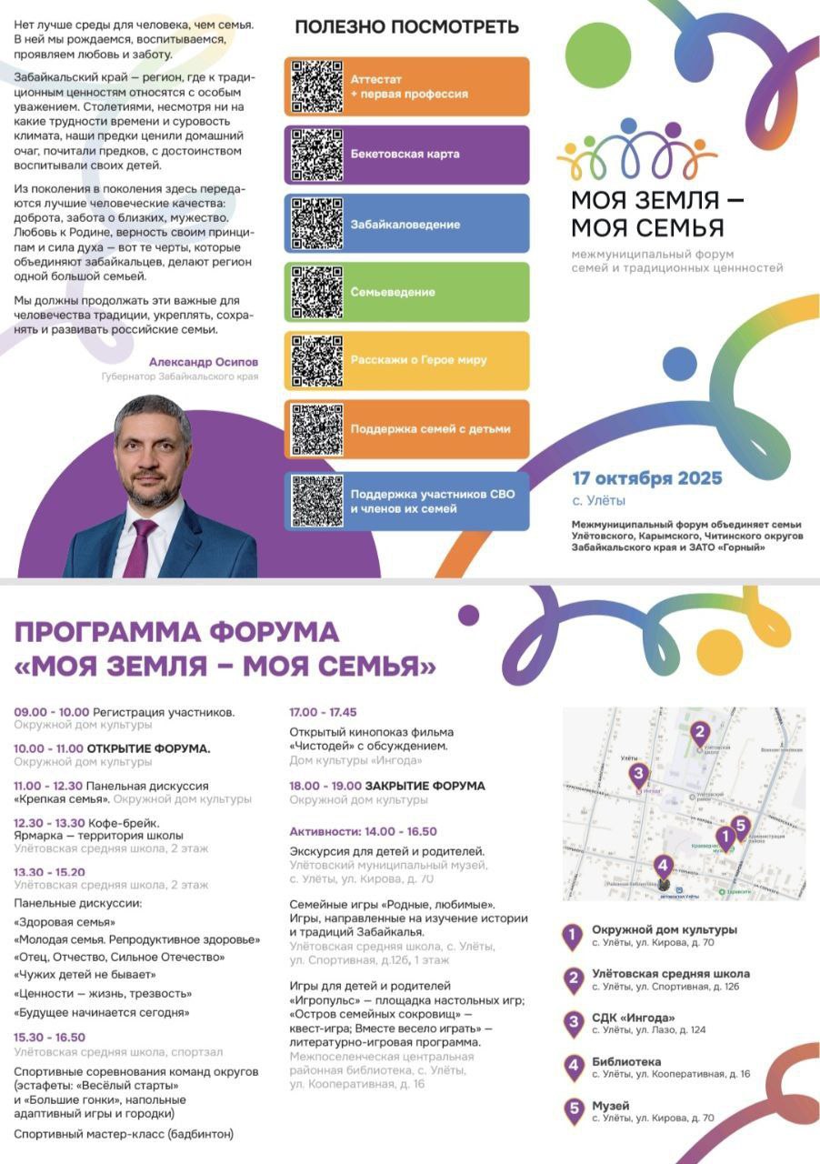 Напомним, первый в Забайкалье форум семей и традиционных ценностей «Моя земля – моя семья» прошел в Чите в июле 2025 года на базе Забайкальской краевой филармонии. Спикерами площадок стали ведущие специалисты края и топовые гости федерального уровня. Состоялось награждение особо отличившихся семей Забайкалья. На центральной площади Читы чествовали обладателей медалей «Родительская доблесть» и победителей регионального этапа Всероссийского конкурса «Семья года». Мероприятие организовано для достижения целей национального проекта «Семья» — поддержка семей и укрепление семейных ценностей.