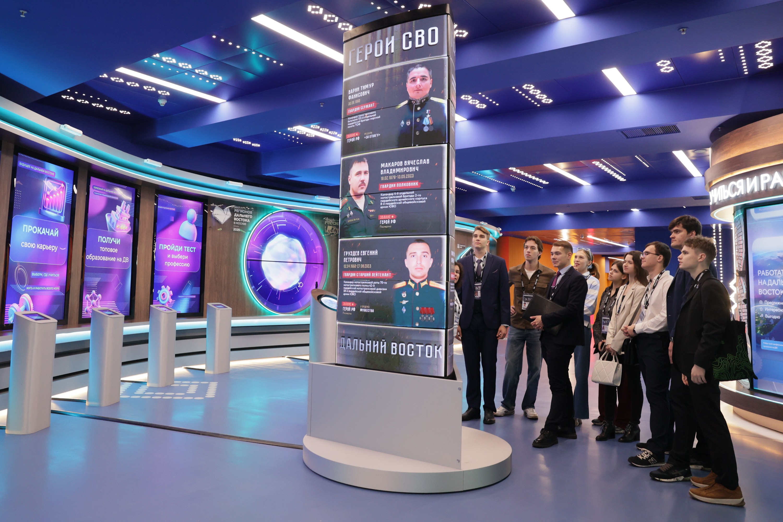 Особое внимание — патриотическому воспитанию. Экспозиция рассказывает о героях-дальневосточниках СВО, работе центров военно-патриотического воспитания «Воин», волонтерском движении. На экспозиции представлен портрет уроженца Забайкалья, Героя России Евгения Груздева. Евгений родился в Борзе, учился в многопрофильной гимназии №12 Читы, в 2008 году семья переехала в Омск. Принимал участие в СВО с первых дней, был трижды награжден орденами Мужества, удостоен звания Герой Российской Федерации посмертно.