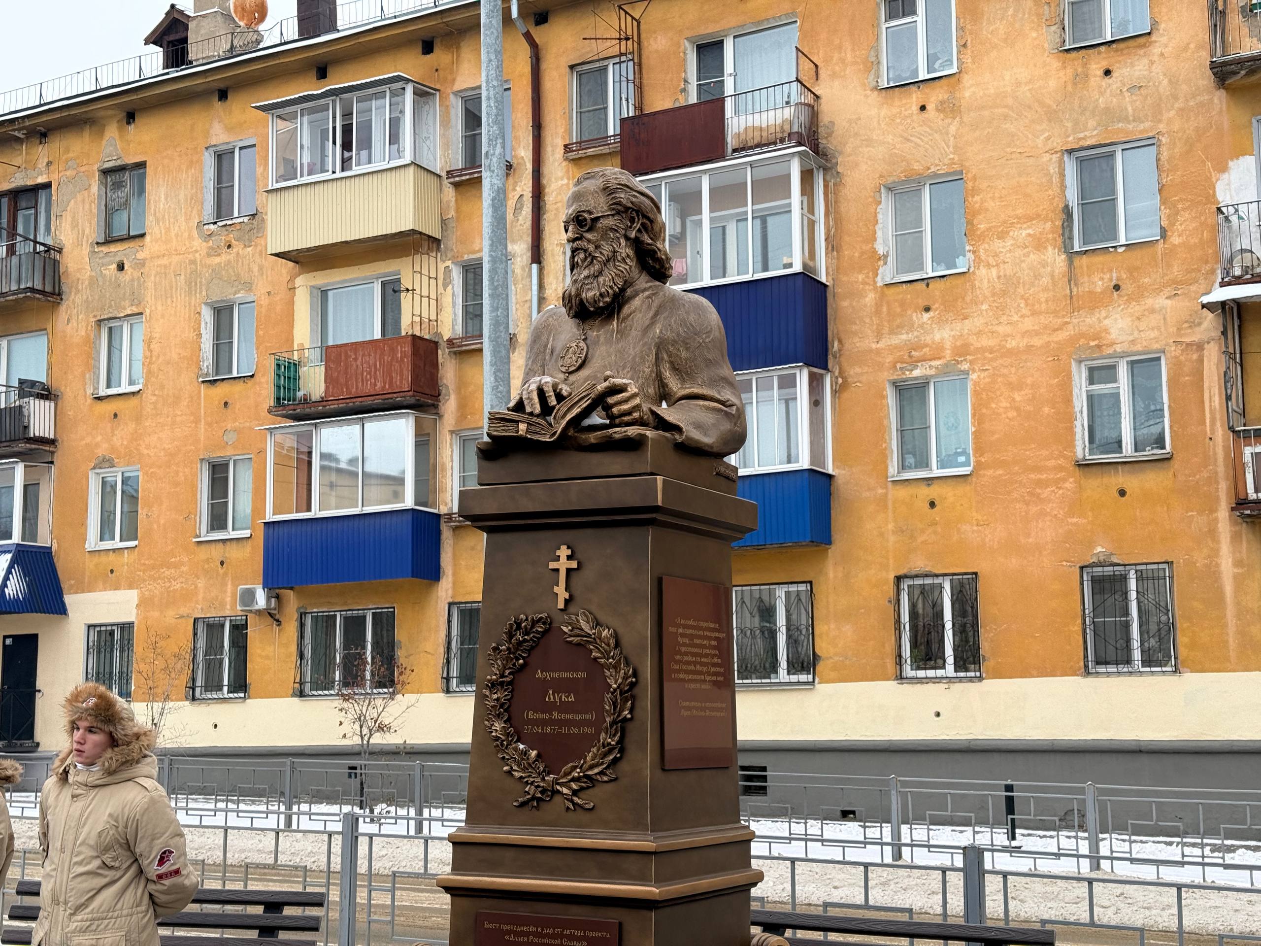Бюст Святителя Луки Крымского установили на аллее по улице Горького, где рядом находятся знакомые места — Читинская медицинская академия, а также храм в честь самого святителя Луки.