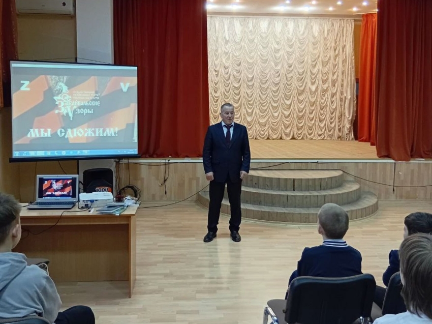«Я рассказывал именно о вкладе забайкальцев в Победу в Великой Отечественной войне и в разгром Квантунской армии, о подвигах Алдара Цыденжапова и Евгения Эпова, о героизме и мужестве земляков в специальной военной операции, о волонтерском движении в Забайкалье. Прочитал стихотворения забайкальских авторов и поэтов новых регионов России об СВО из книги «Мы с вами, братья!», стихотворения Бориса Макарова о России и на военную тематику, авторские стихи. От имени сотрудников и пенсионеров прокуратуры Забайкальского края подарил средней школе спорттовары. Также передал Совету ветеранов муниципального округа денежные средства, собранные коллективом сотрудников и пенсионеров забайкальского надзорного округа для новогодних подарков детям погибших воинов СВО», - рассказал Валерий Попов.