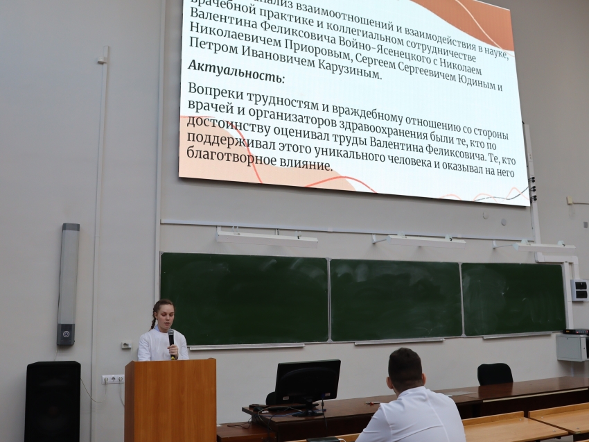 «Всю свою профессиональную жизнь она несла заветы Валентина Феликсовича Войно-Ясенецкого, старалась научить этому своих студентов. Татьяна Николаевна со своими студентами всегда принимала участие в данной конференции. Елизавета Климентьева, студентка 5 курса лечебного факультета, Лина Слободенюк, студентка 4 курса педиатрического факультета выступили с докладом «В ее глазах читали свет»: о педагогическом, научном и врачебном служении к.м.н., доцента кафедры нормальной анатомии Степановой Татьяны Николаевны», - сообщили в Медакадемии.
