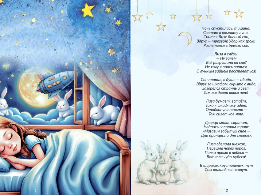 Участникам конкурса нужно было выполнить с помощью Алисы AI творческое задание. Читинка Наталья Ромащенко сгененировала сказку «Магазин детских снов» про девочку Лизу, которая попала в волшебный сон с котом Бархатком. Она загрузила подходящий промпт в Алису AI, который придумал сказку. Затем с помощью нейросети были нарисованы иллюстрации к рассказу при помощи функции генерации изображений в Алисе AI.