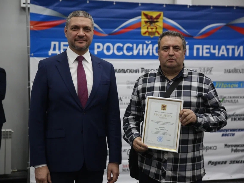 Благодарностью губернатора Забайкальского края «За вклад в развитие средств массовой информации в Забайкальском крае и в связи с празднованием Дня российской печати» были награждены десятки журналистов региона. Глава края отметил не только работу сотрудников ведущих изданий, но и ветеранов старейшего издания региона — «Забайкальского рабочего», а также сотрудников районных СМИ.
