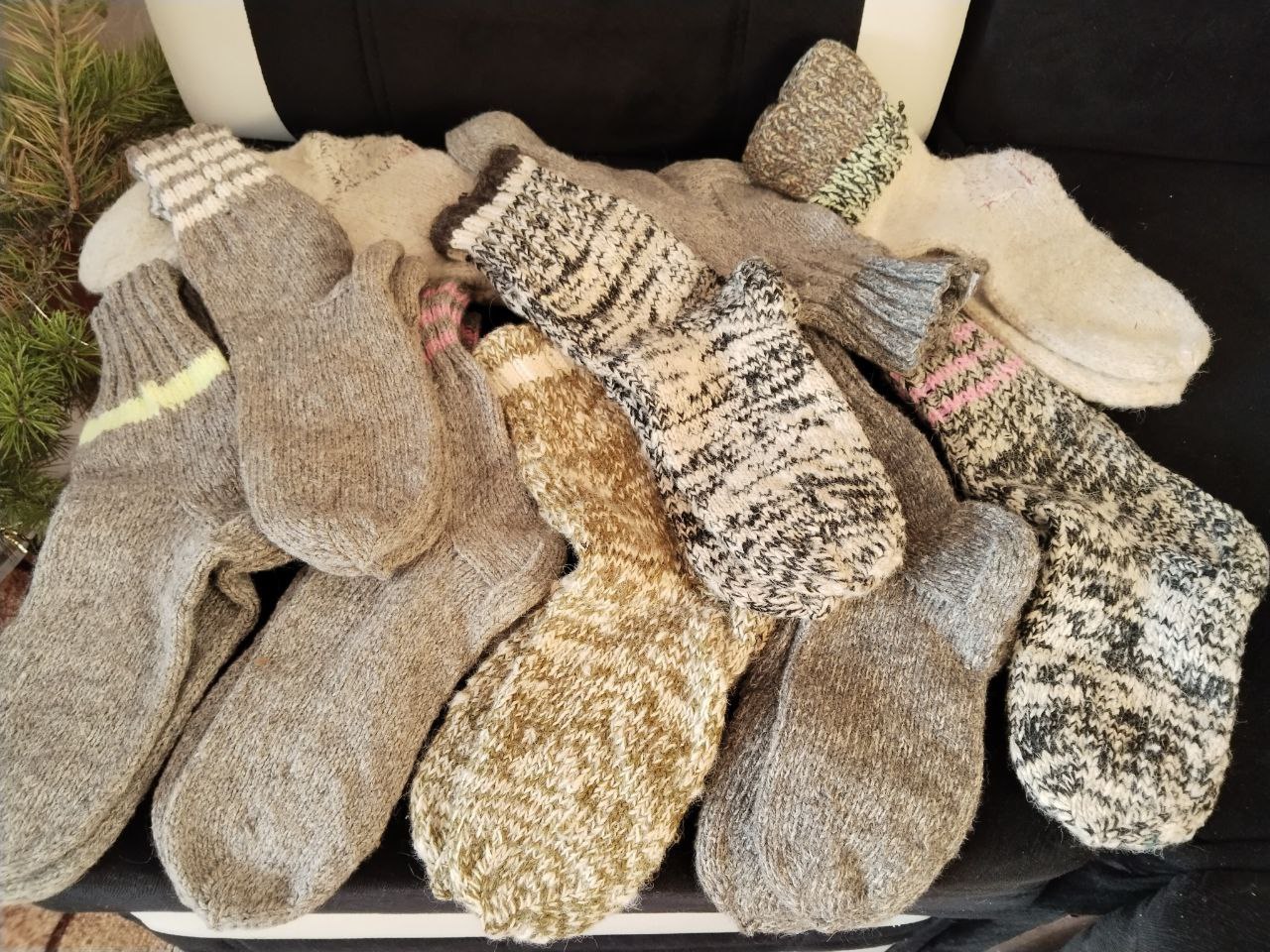 Жительница села Захарово Красночикойского округа Татьяна Константиновна Недорезова вяжет тёплые носки бойцам СВО