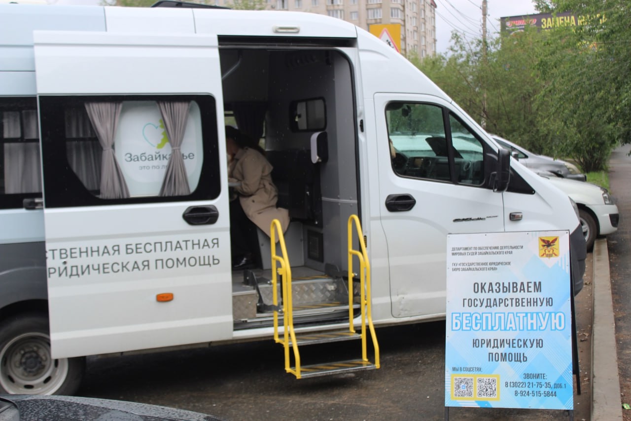 Также для более эффективной работы с гражданами, в том числе и маломобильными, бесплатная юридическая помощь осуществляется адвокатами в Многофункциональных центрах Читы и районных округах и специалистами Государственного казенного учреждения «Государственное юридическое бюро». В дополнение, в распоряжении Департамента находится специализированный транспорт по оказанию бесплатной юридической помощи, который был выделен Президентом РФ Владимиром Путиным нашему субъекту.