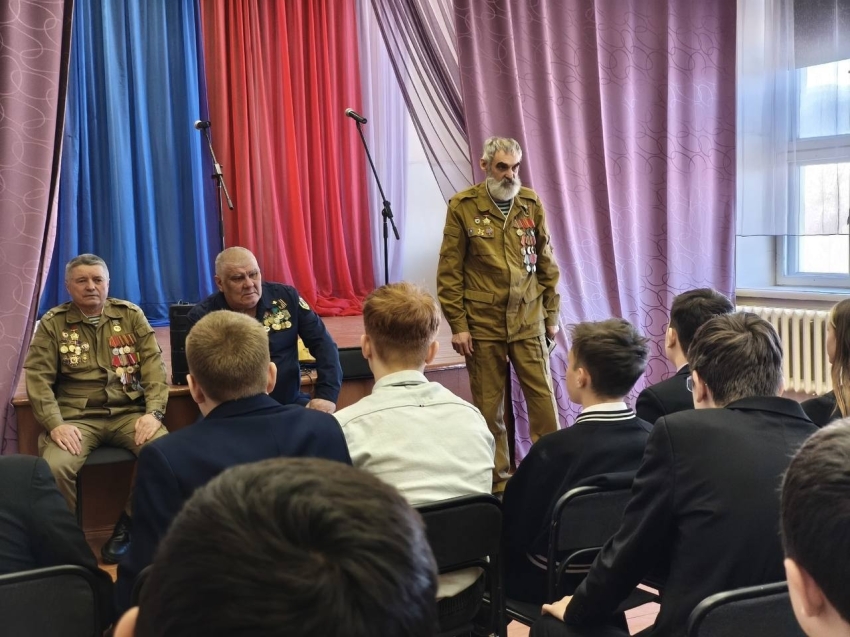 Александр Владимирович поделился с ребятами воспоминаниями о своей службе. Он говорил о том, что помогало советским солдатам выживать в чужих горах, среди зноя и опасности. Главным оружием, по его словам, была даже не техника, а стойкость духа, вера в победу и нерушимое братство.
