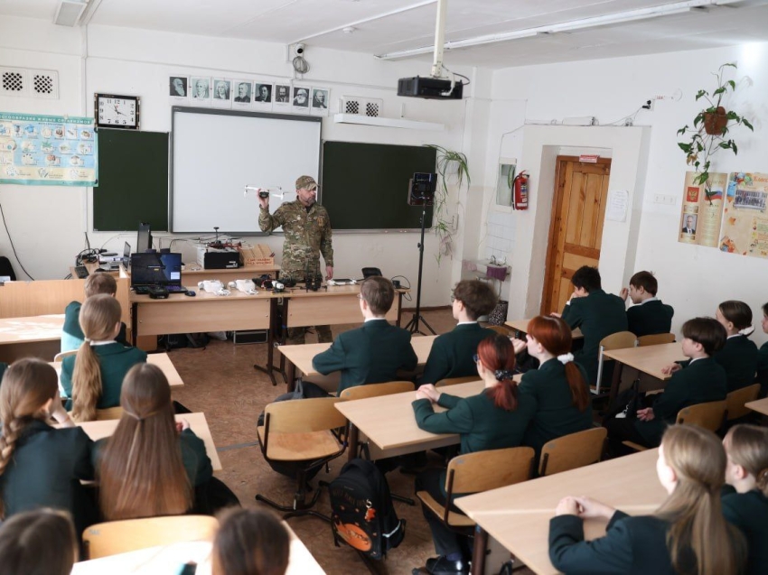 В читинской средней школе №9 накануне Дня защитника Отечества забайкальский ветеран СВО, атаман городского казачьего общества «108 станица», входящего в состав Забайкальского казачьего войска, Евгений Попов провел для учеников 7 класса урок по истории появления и развития беспилотной авиации, специфике использовния БПЛА на спецоперации, а также показал, как управлять гражданским дроном.