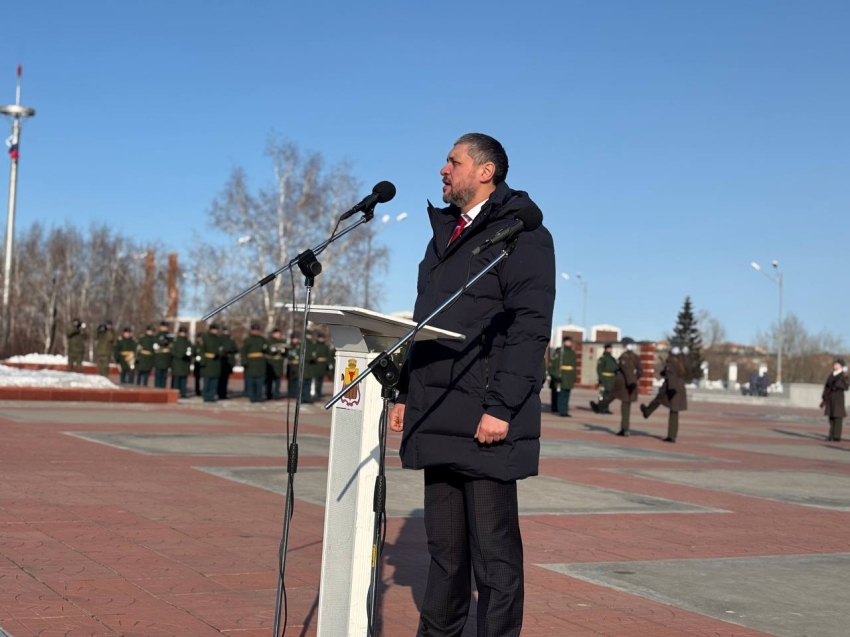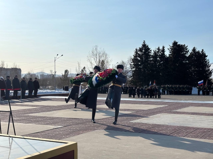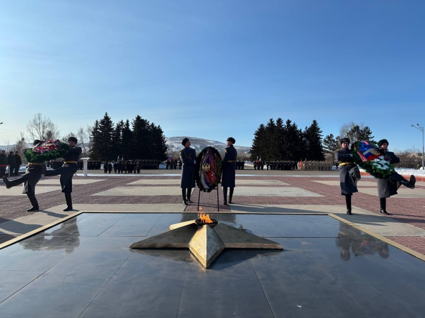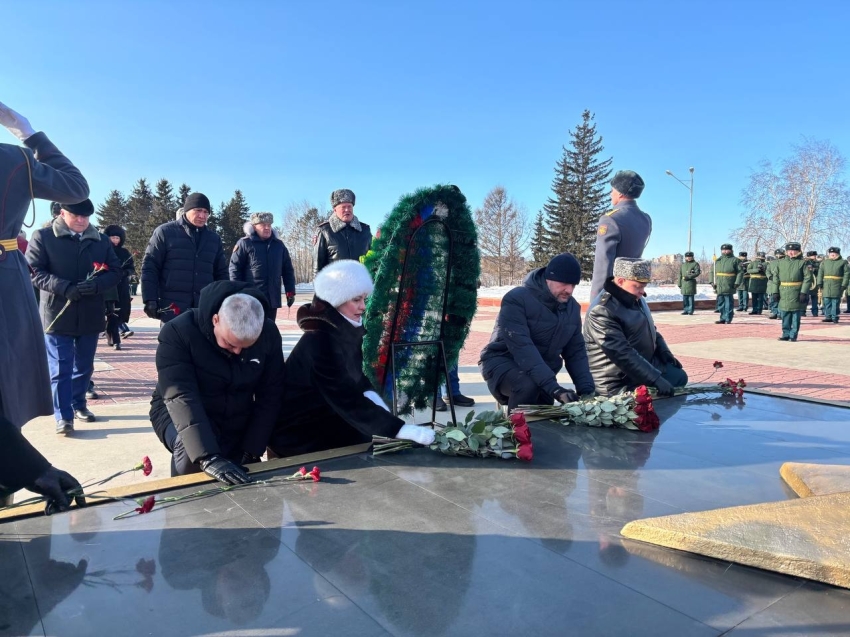 На Мемориале боевой и трудовой славы забайкальцев в Чите прошел митинг в честь Дня защитника Отечества