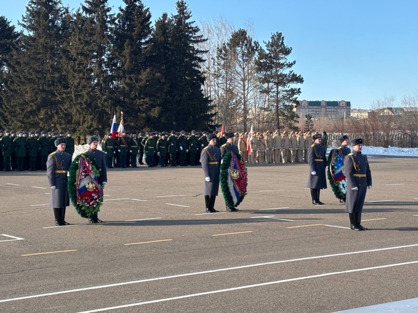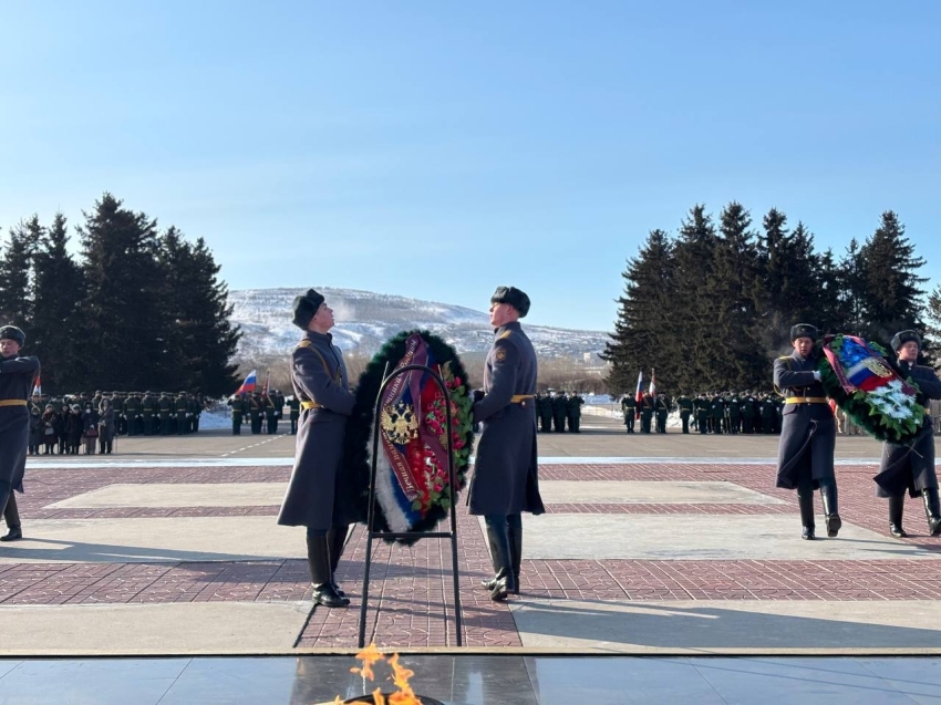 Митинг с возложением цветов к Вечному огню и торжественный марш парадных расчетов провели в День защитника Отечества в Чите на мемориале боевой и трудовой славы забайкальцев. Традиционно здесь, в памятном месте, собрались военнослужащие 29-й гвардейской общевойсковой ордена Суворова армии Восточного военного округа, представители силовых ведомств края, ветераны, участники СВО, юнармейцы, горожане. С Днём защитника Отечества забайкальцев поздравил губернатор Забайкальского края Александр Осипов.