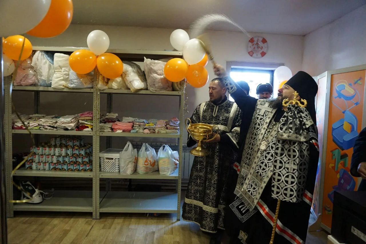 Епископ Нерчинский и Краснокаменский Макарий принял участие в торжественном открытии гуманитарного склада «Спаси жизнь» вместе с протоиереем Александром Тылькевичем, настоятелем храма св. апостолов Петра и Павла, на территории которого находится гуманитарный склад, и окропил помещение склада святой водой.
