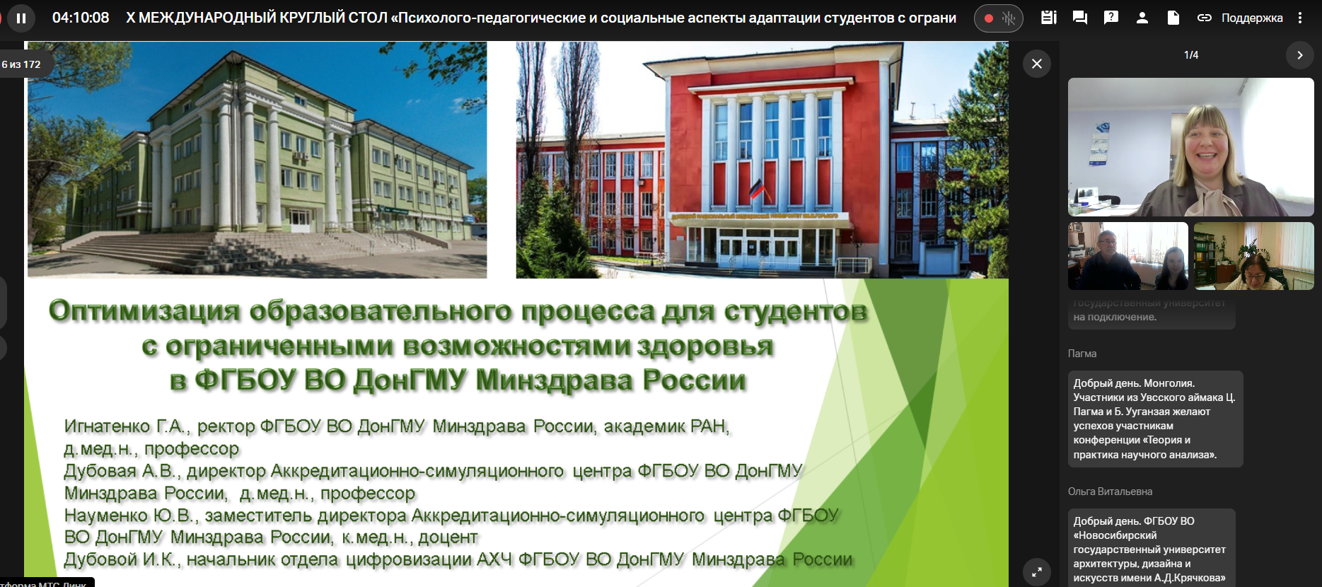Ключевыми темами для обсуждения были: технологии и практические модели успешной адаптации студентов с инвалидностью и ОВЗ, психолого-педагогическое сопровождение обучающихся: методы диагностики, индивидуальные маршруты и сопровождение,а также инновационные методики и ассистивные технологии для повышения адаптивного потенциала студентов.