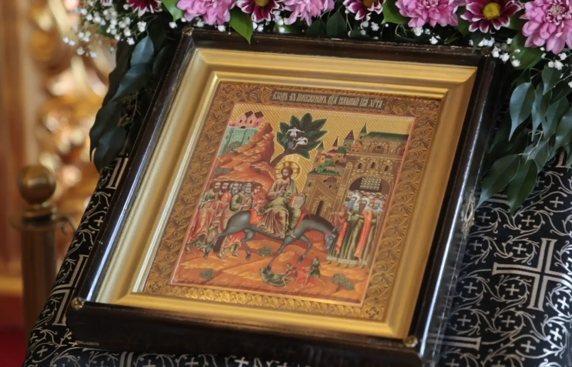 Этот сюжет отражён на многих иконах. Как уточнил митрополит Читинский и Петровск-Забайкальский Димитрий, на иконах отображают людей, которые стелют дорожку из своей одежды — люди снимают с себя одежду, потому что считают это доблестью и честью. Потом они надевают эту одежду и носят с особым почтением, знаком уважения.