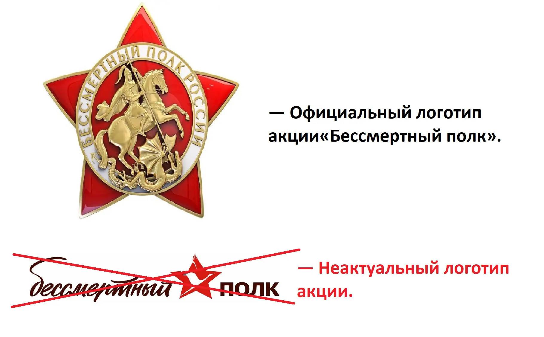 «У нас не за горами День Победы. Отдельно обращаю внимание на актуальный логотип акции «Бессмертный полк» — официальным логотипом является Красная звезда c вписанным в нее образом Георгия Победоносца. Прошу не путать официальный логотип с тем, где есть журавль и название акции», — заявила Наталья Щербина.