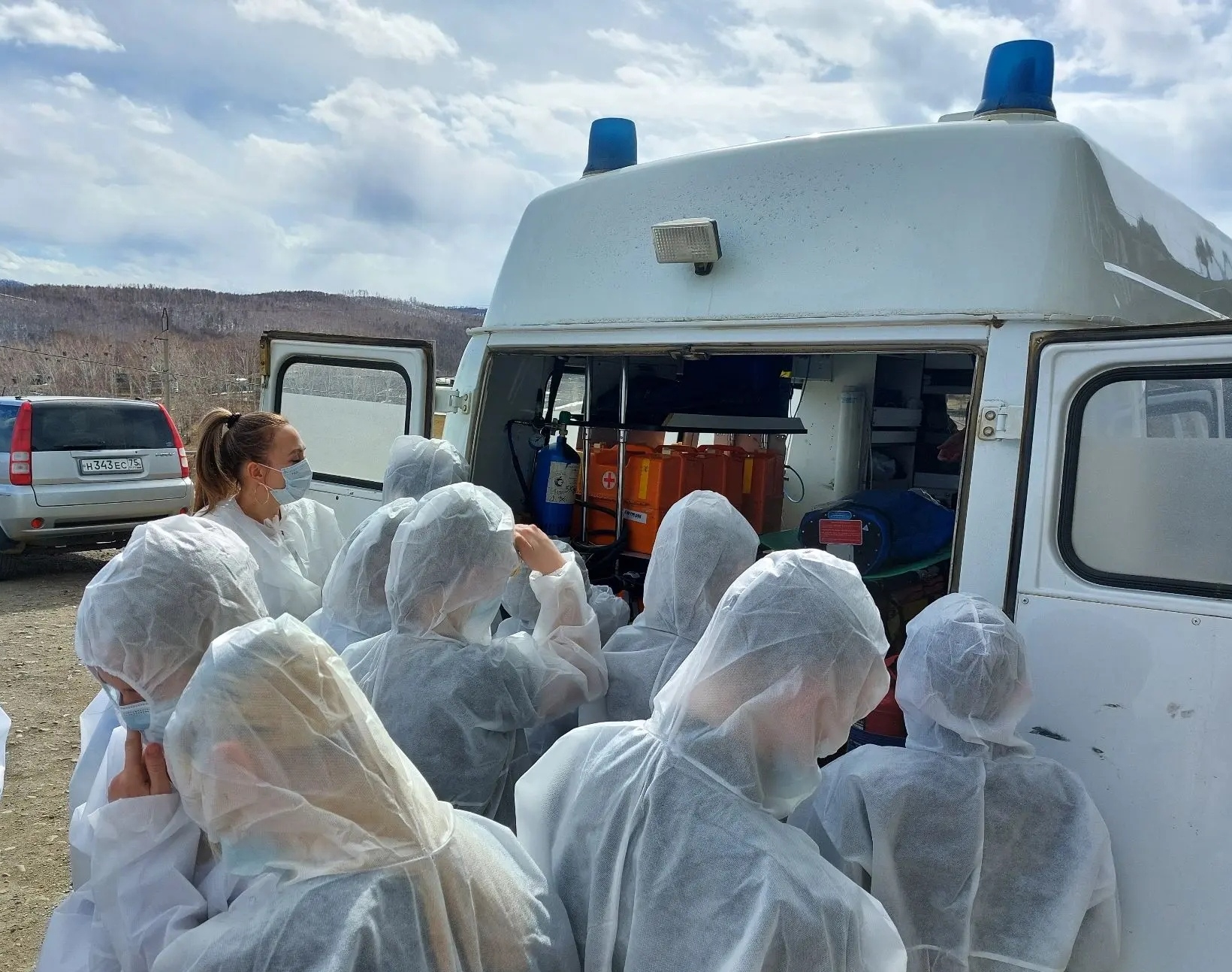 Во время экскурсии ребята заглянули в диагностическую лабораторию и попробовали определить свою группу крови. Уже после они рассмотрели оборудование в автомобиле скорой медицинской помощи и поговорили с фельдшером.